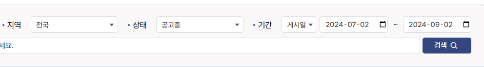 지역, 상태, 기간 등을 선택한 후 검색을 클릭합니다.