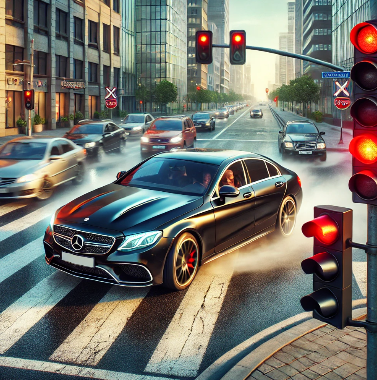 빨간불 신호는 모든 차량이 정지선 앞에서 완전히 멈춰야 함을 의미합니다. 빨간불 신호를 무시하고 교차로에 진입하여 통과한 경우 신호위반에 단속됩니다.